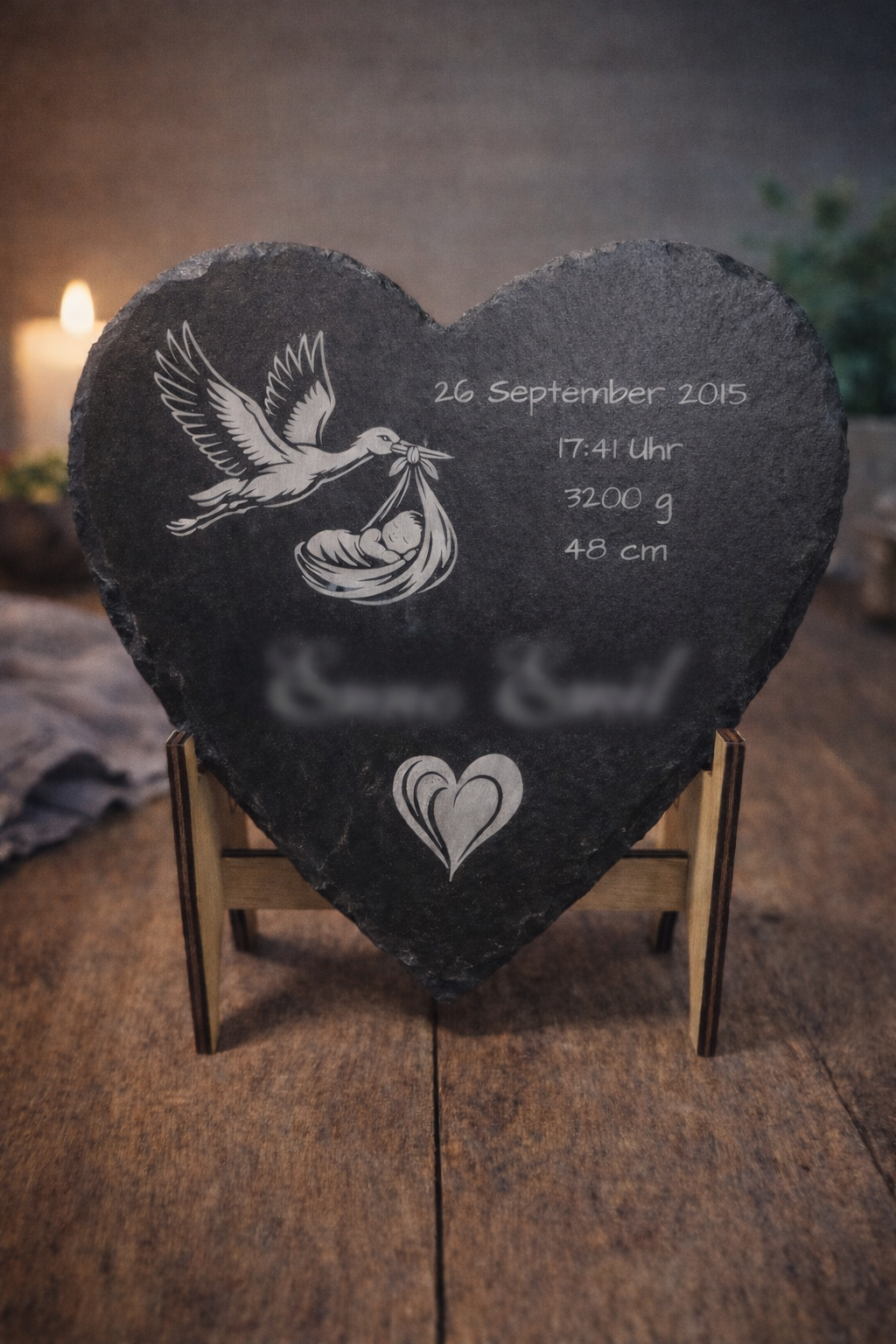 Ob nur Schiefer mit Name, Datum, Logo oder persönlicher Spruch oder in Kombination mit gelasertem Holz.